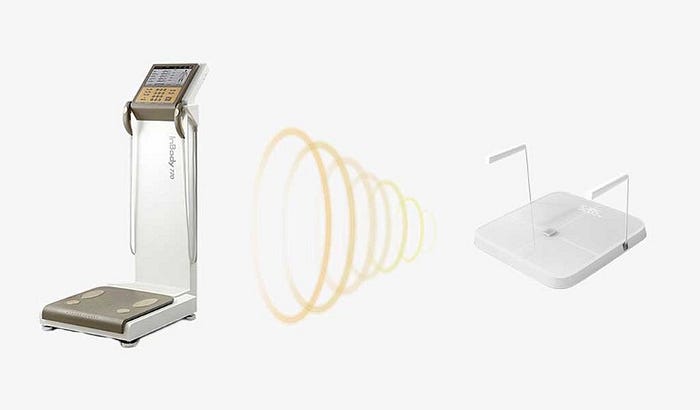 Have you ever wondered what it looks like when a professional body analyzer that costs $20,000 becomes a body fat scale that costs less than $200? Now you konw, it looks like this.